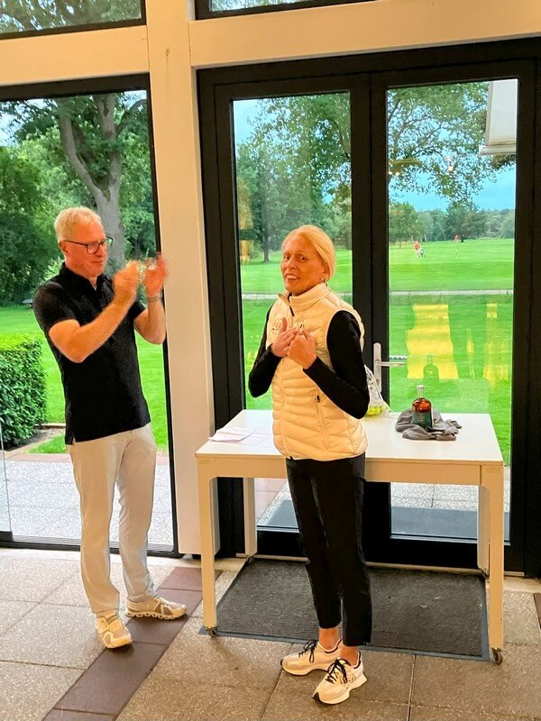 Eine besondere Freude war uns die persönliche Anwesenheit von Martina Wagenknecht, der Hotelchefin von Gut Apeldör. Trotz starker Belastung in der Hochsaison ist sie extra für unser Turnier angereist und so konnten wir uns auch persönlich für die tolle Unterstützung dieses Turniers bedanken. Sie hat dann auch den Siegern die Preise überreicht: