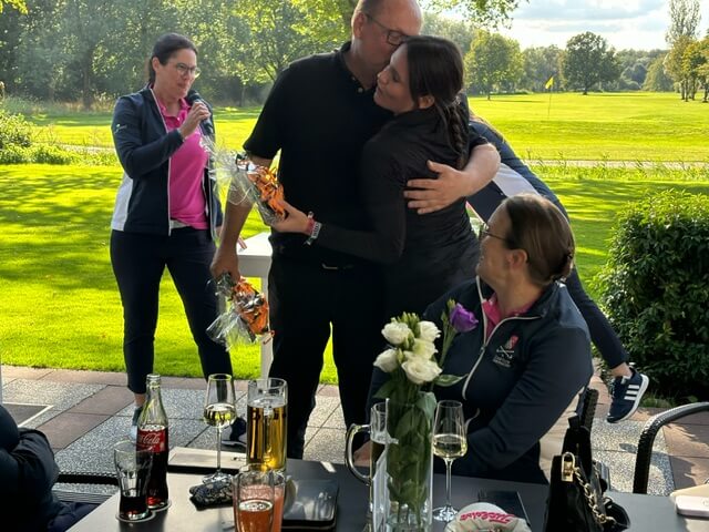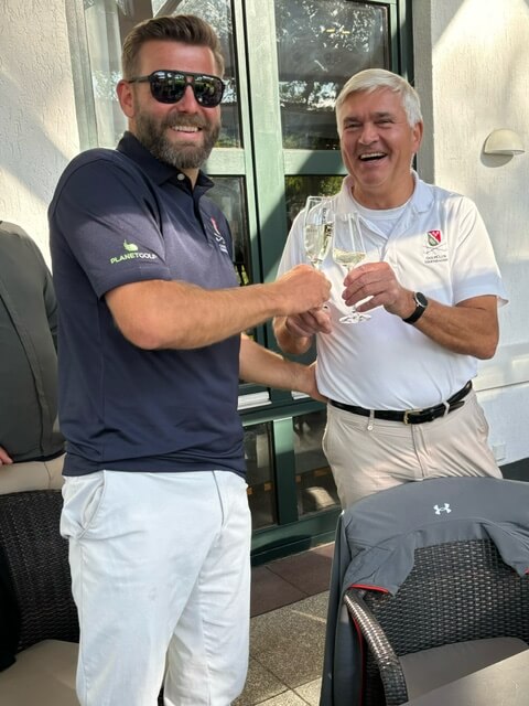 Daniel Quellmalz gelang am Sonntag auf Bahn sechs ein hole in one. Er freute sich zu Recht riesig und lud alle Turnierteilnehmer und Gäste ein, mit einem Glas Sekt auf dieses Spektakel anzustoßen. Glückwunsch!!!