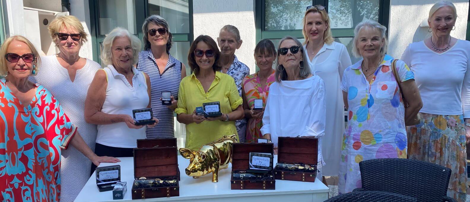Was lange währt, wird endlich gut! Erst beim dritten Versuch, dieses Turnier zu starten, spielte das Wetter mit – auch wenn die Temperaturen kletterten und kletterten. Gut gelaunt bestaunten wir die gesponserten Preise, als wir von der Runde zurückkamen.