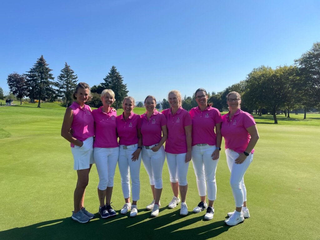 Sportlich gabs da jetzt für uns als Team nicht so viel zu gewinnen, so unendlich lang präzise und fehlerfrei wurde da von unseren Mitbewerberinnen Golf vom feinsten zelebriert, aber bei vier herrlichen Sonnentagen waren wir bestimmt das vergnügteste, entspannteste und – Dank unserer Sponsoren – bestangezogenste Team dieser Meisterschaft. Und wir haben jeden einzelnen Moment sehr genossen – herrlich war’s!