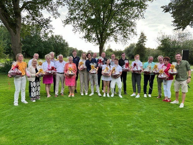 Das Turnier haben als Bruttosieger Britta Daume und Christiane Goldstein gewonnen. Sie hoben in einer launigen Bruttorede den guten Platzzustand, das freundliche Miteinander im Flight und im Club hervor. Thorsten Klein und Christian Strothmann machten den ersten Platz bei Netto A und sicherten sich ebenso wie Aimée Pabst mit Constantin Rimpel als Netto B-Sieger je einen vom Präsidenten gesponserten, mit italienischen Leckereien und graviertem Pastaglas gefüllten, Präsentkorb sichern. Weitere Präsentkörbe gingen an die jeweils Zweit- und Drittplatzierten von Netto A und Netto B sowie an die Gewinner der Sonderwertungen. Da möglichst viele Turnierteilnehmer in den Genuss eines Preises kommen sollten, gab es einen Doppelpreisausschluss, außerdem wurden weitere Präsentkörbe an die Turnierteilnehmer verlost. Da Günter Benz seinen Gewinn zur weiteren Verlosung zur Verfügung stellte, konnte sich ein zusätzliches Team über Gewinne freuen.