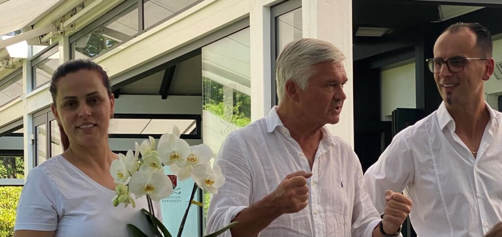 Im Anschluss daran haben wir in geselliger Runde auf der schattigen Terrasse gesessen. Dabei stellte uns unser Clubpräsident die neuen Betreiber der Clubgastronomie vor.