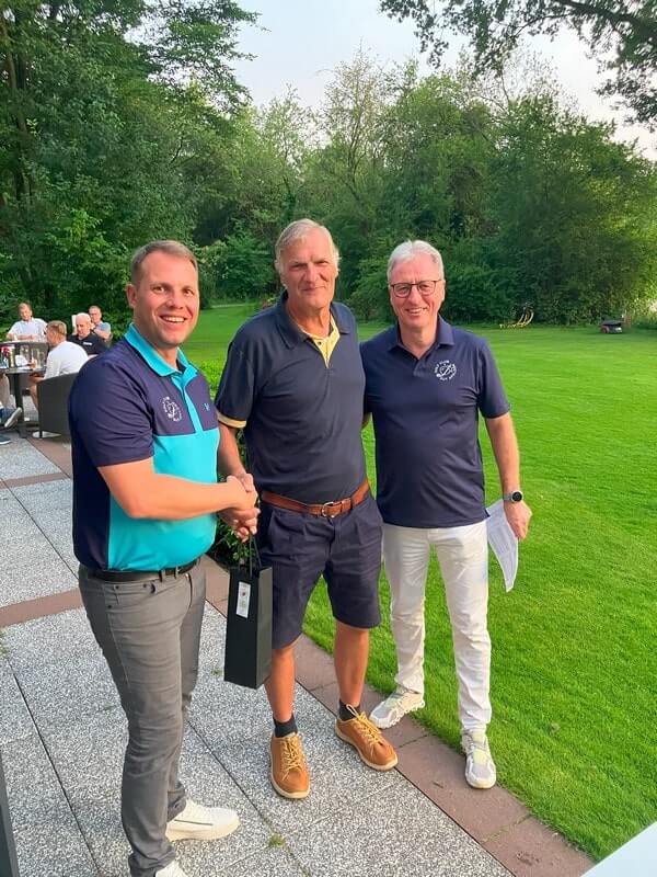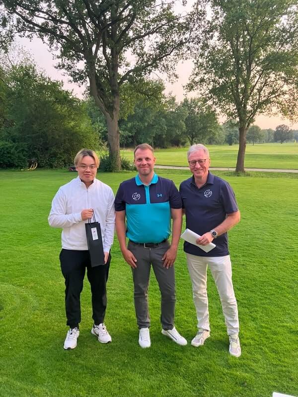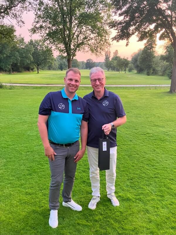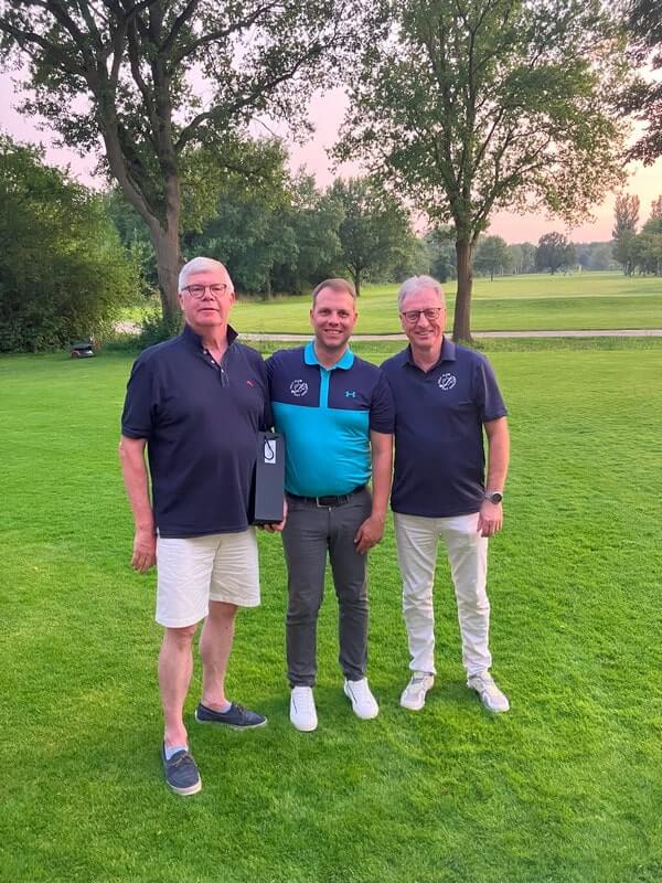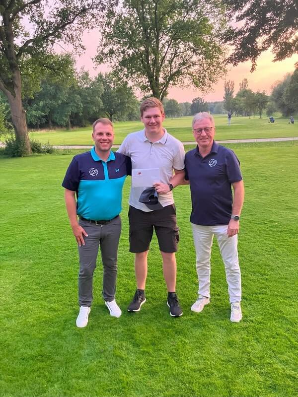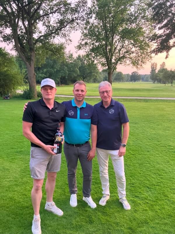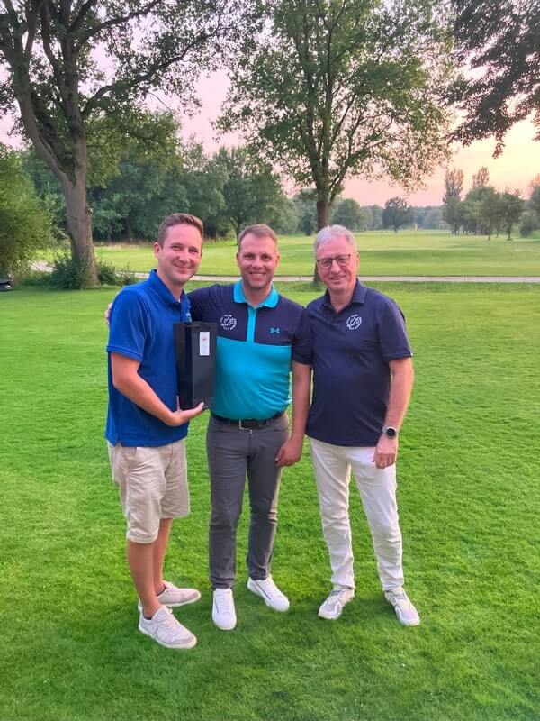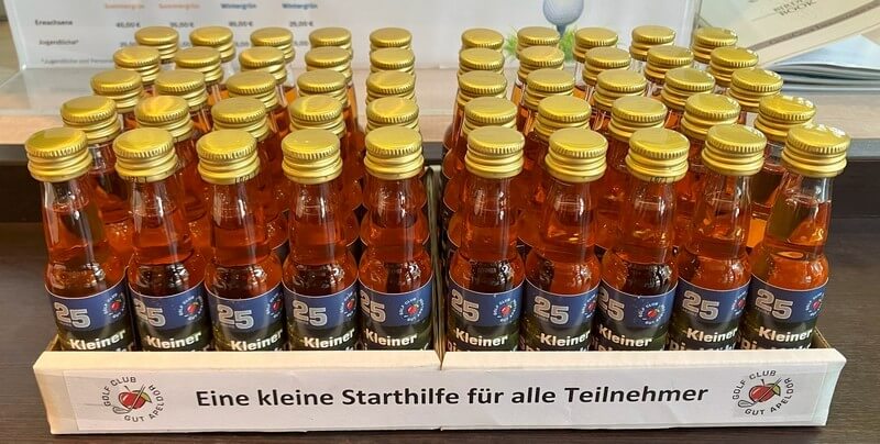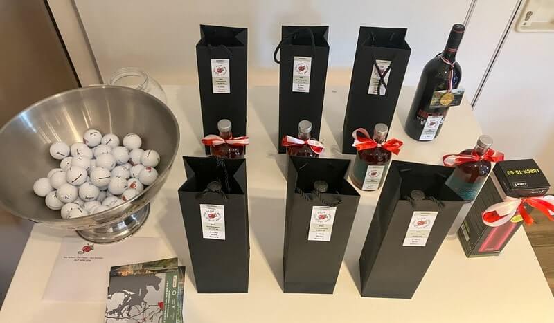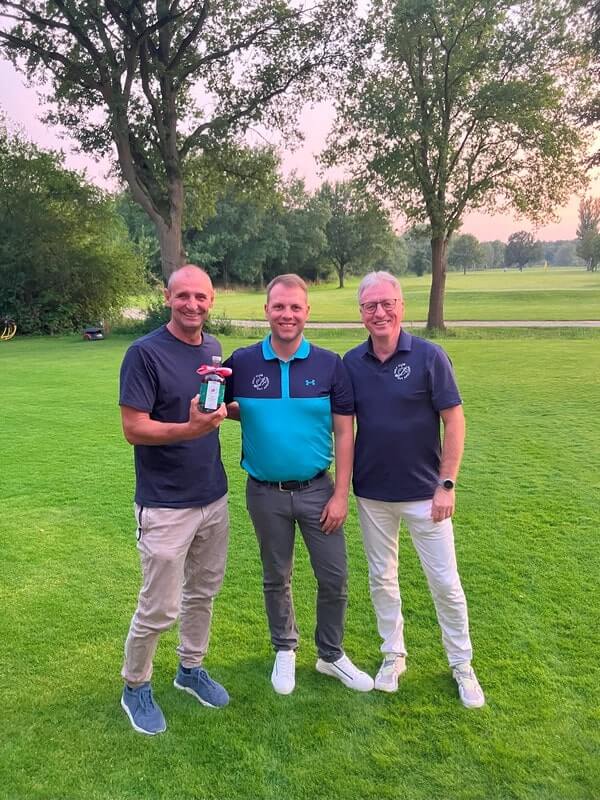 Da natürlich alle Mitspieler per se schon Sieger sind, bekam jeder einen Logoball vom Gut Apeldör als Präsent und diese waren mit einer fortlaufenden Nummer versehen. Aus einem Glas mit ebenfalls nummerierten Tees wurde dann ermittelt, wer den Hauptpreis – ein Wochenende auf Gut Apeldör mit Halbpension und Greenfee – gewinnen sollte. Mit der Nummer ‚1‘ war der glückliche Gewinner dann unser ‚Youngster‘ Hendrik Butzmann.