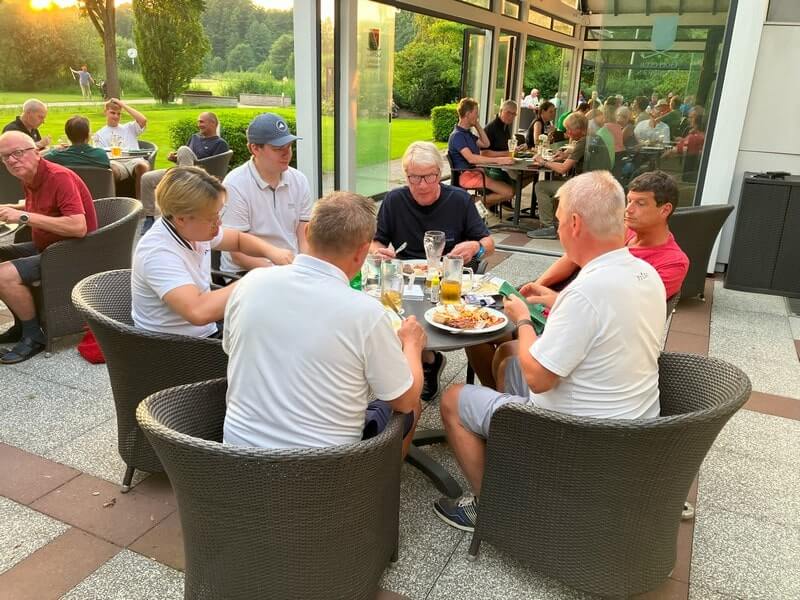 Bei hochsommerlichen Bedingungen konnten wir mit einer tollen Beteiligung von 51 Spielern auf die Runde gehen und jeder konnte sich mit einem ‚kleinen Spielführer‘ als Starthilfe vorbereiten. Die Sonne der letzten Tage hat unserem Platz sehr gut getan und die letzten nassen Stellen noch abgetrocknet. Die meisten Spieler kamen dann doch von der Hitze etwas gezeichnet ins Clubhaus und freuten sich über eine Dusche und kalte Getränke.