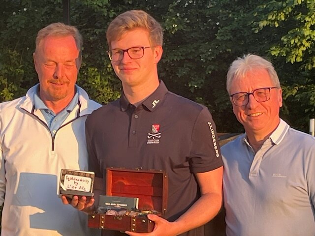 Beim Titel ‚Goldrausch‘ war der Name des Turniers dann auch tatsächlich wieder Programm. Sowohl das Wetter als auch der Platz hatten gestern in jedem Fall Goldstandard. Zudem konnten Dank der großzügigen Unterstützung der L’or AG unseres Mitspielers Marcus Meyn die Gewinner wieder mit echtem Edelmetall belohnt werden. Die Sieger in den einzelnen Klassen haben sich über eine goldene Schatzkiste und einen echten Goldbarren (1 Gramm) gefreut, während die Zweit- und Drittplatzierten mit kanadischen Silbermünzen geehrt wurden.