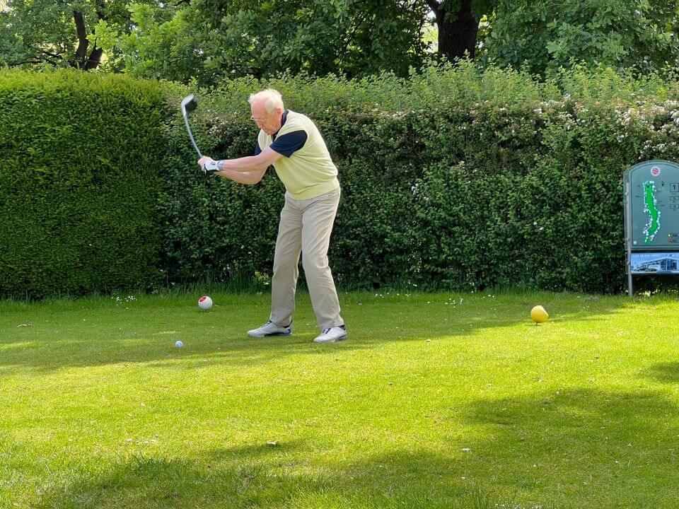 Insbesondere der sehr gepflegte Braunschweiger Platz, mit seiner interessanten Topographie, machte manchen von uns Schwierigkeiten, da wir alle von Gelb abschlugen und möglichst gerade Flugbahnen verlangt waren, um zwischen den Baumschluchten das Fairway zu erreichen. Etwas mehr als zwei „Köstermann“ genügten, um in den Genuss eines der Preise zu kommen, was den Schwierigkeitsgrad widerspiegelte. Natürlich darf man dabei nicht das Durchschnittsalter unserer Spielgruppe von rund 82 Jahren vergessen.