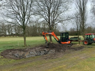 Die Informationsveranstaltung zum „Masterplan Entwässerung“ am 26. März 2025 war überaus gut besucht. In sehr anschaulicher Form berichteten Achim Held und Helge Hoyme von den Herausforderungen unseres Platzes und den Maßnahmen, die bereits angelaufen sind und in den nächsten Monaten bis hin zum nächsten Jahr noch geplant sind. Ausgehend von der topgrafischen Lage und den Bodenverhältnissen unseres Platzes wurden die Maßnahmen auf allen 18 Bahnen und der Driving Ranch und den anderen Übungsbereichen vorgestellt. Neben umfangreichen Drainagearbeiten auf vielen Bahnen, werden vor allem auch eine Reihe von neuen Schürfen (kleinen Teichen) angelegt. Die ersten Bodenarbeiten haben bereits zwischen den Bahnen 9 und 18 begonnen. Das Aerifizieren mit Sanden des gesamten Platzes ist eine weitere Aufgabe, die nur sukzessive vorgenommen werden kann. Es ist geplant, mit diesen Arbeiten dieses Jahr noch zu beginnen.